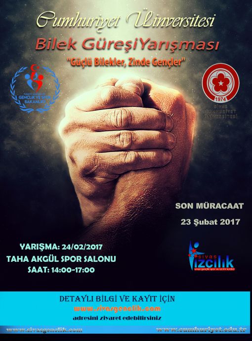 ÜNİVERSİTELİLER ARASI BİLEK GÜREŞİ YARIŞMASI BAŞVURULARI BAŞLADI .BAŞVURU İÇİN SAYFANIN EN ALTINDAKİ KAYIT FORMUNU DOLDURUNUZ.
